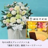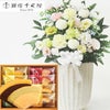 洋花を使った旬のおまかせ お供え花「風月アレンジ」+【銀座千疋屋】銀座フルーツクーヘン セット 生花 FKAASW