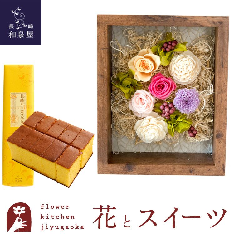 プリザーブドフラワーフレーム 「シャルム」と長崎カステラ蜂蜜 0.5号 10切入 FKTPHSW