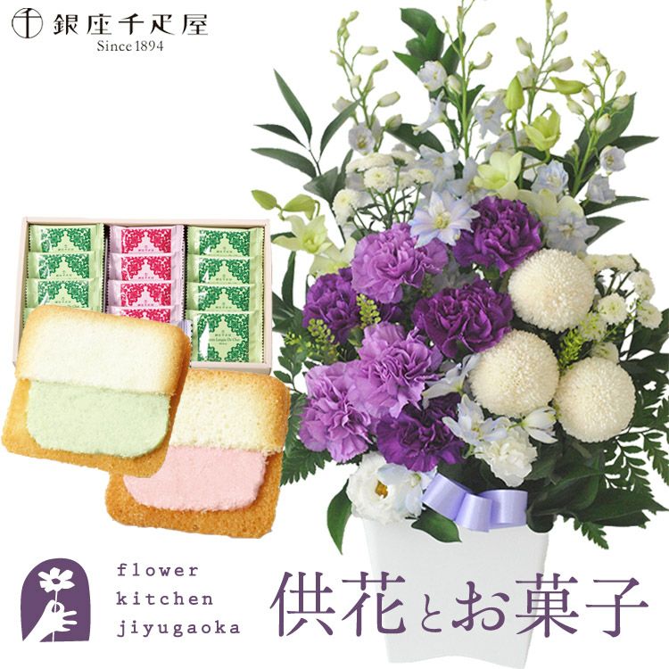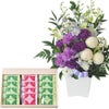 ムーンダストを使ったお供えアレンジメントMサイズ+銀座千疋屋 銀座フルーツラング ラングドシャ 生花 FKAASW