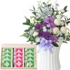 ムーンダストを使ったお供えアレンジメントLサイズ+銀座千疋屋 銀座フルーツラング ラングドシャ 生花 FKAASW