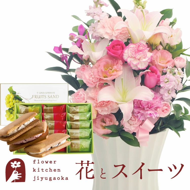 旬のアレンジメント「ピンク」+銀座千疋屋 銀座フルーツサンド 生花 FKAASW