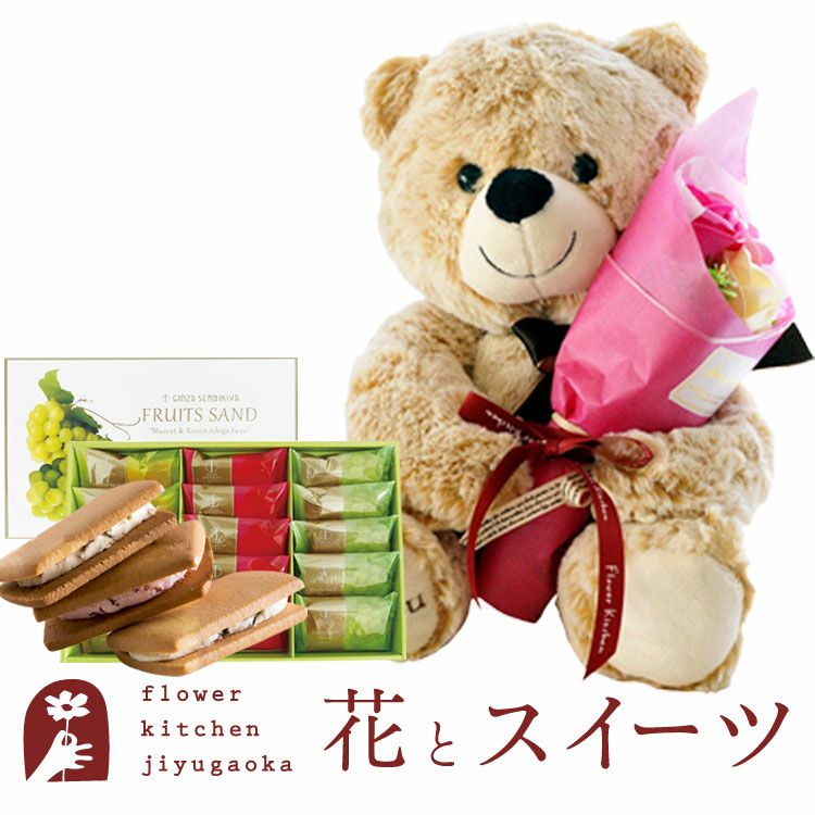 ソープフラワーアレンジ くまのマックス&フェアリーブーケ+ 銀座千疋屋 銀座フルーツサンド FKTPHSW