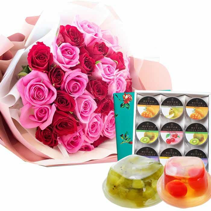 30本バラ花束+銀座千疋屋 銀座ゼリー9個入り 生花 FKAASW