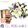 洋花を使った ユリのお供えアレンジMサイズ+銀座千疋屋 銀座焼きショコラサブレ8個入 生花 FKAASW