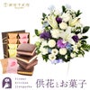 洋花を使った旬のおまかせ お供え花 Lサイズ+と銀座千疋屋 銀座焼きショコラサブレ8個入 生花 FKAASW