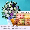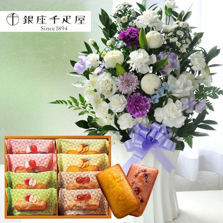 洋花を使った旬のおまかせ お供え花「かすみアレンジ」+【銀座千疋屋】 「銀座フルーツフィナンシェ」セット 生花 FKAASW
