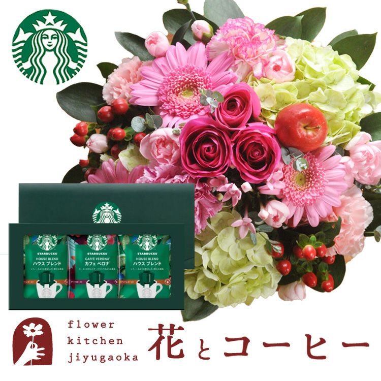 ラウンドアレンジ「ピンク」+スターバックスドリップコーヒーセット 生花 FKAASW