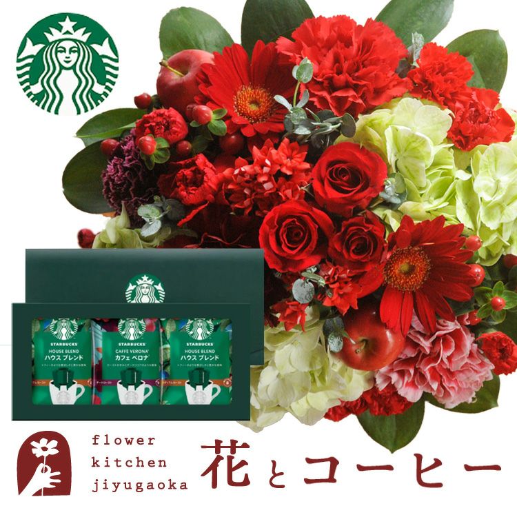 ラウンドアレンジ「レッド」+スターバックスドリップコーヒーセット 生花 FKAASW