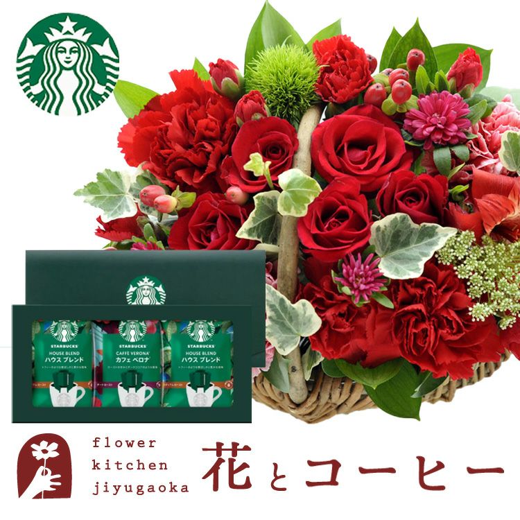 ミニョンバスケット【レッド】+スターバックスドリップコーヒーセット 生花 FKAASW
