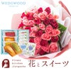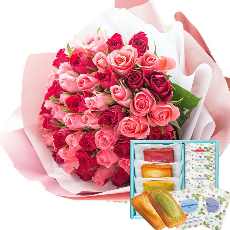 バラ50本花束「レッド×ピンク」バイカラーラッピング+フィナンシェ&【ウェッジウッド】ティーバッグセット WEDGWOOD 生花 FKAASW