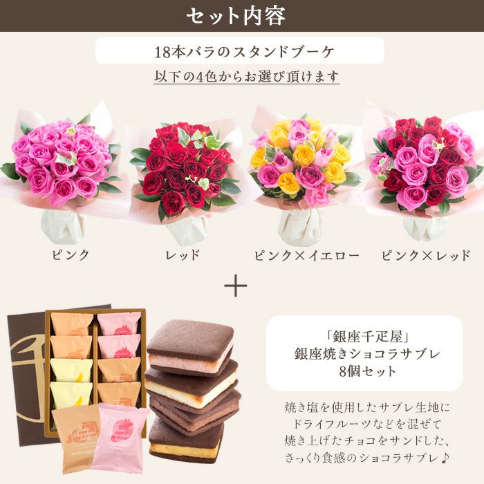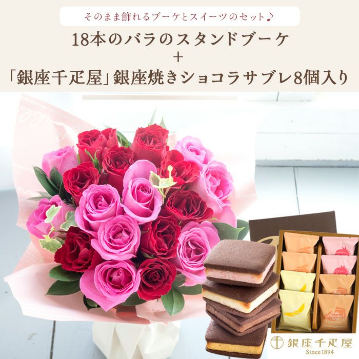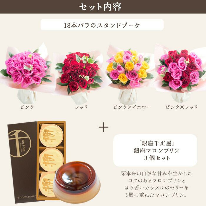 一年に一度の特別な日には、華やかな花と人気スイーツのセットがおすすめ。