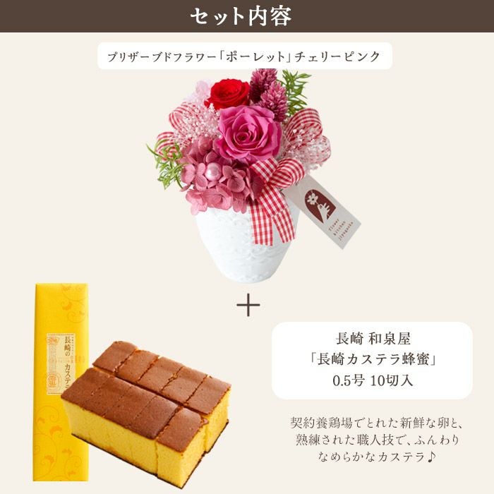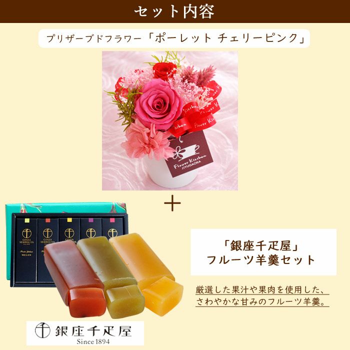 瑞々しいフルーツゼリーやなめらかなプリンは、幅広い世代に愛される人気スイーツ。色鮮やかな花と組み合わせれば、見た目にも華やかで心を癒すギフトになります。