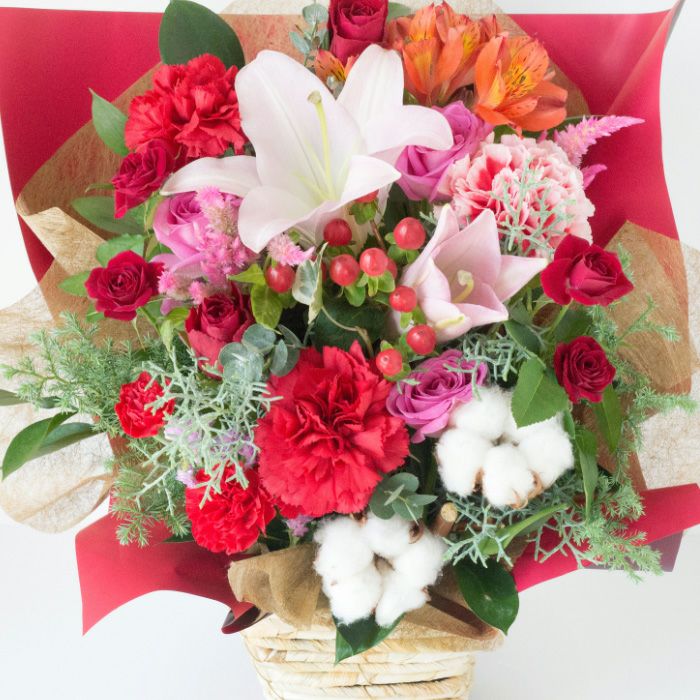 信頼できるフローリストが心を込めて1つ1つ丁寧に手作りしています。