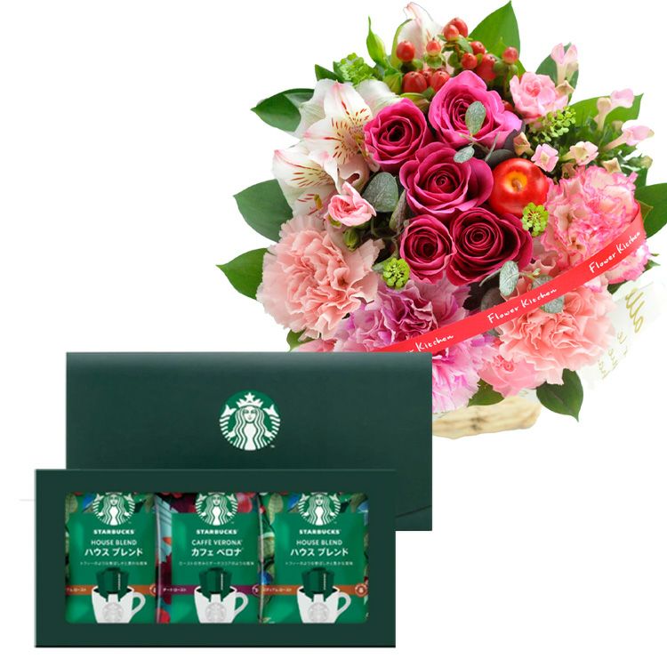 バラアレンジメント+スターバックスコーヒーギフトセット  生花 FKAASW