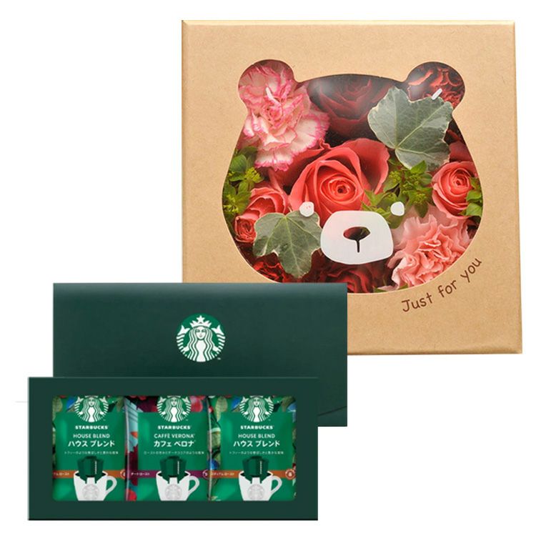 花とコーヒーのセット♪ ハピネスフラワーBOX「くま」+スターバックスコーヒーギフトセット 生花 FKAASW