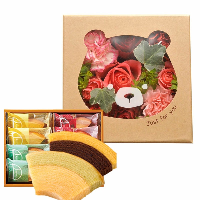 花とスイーツのセット♪ ハピネスフラワーBOX「くま」+【銀座千疋屋】千疋屋フルーツクーヘン セット 生花 FKAASW