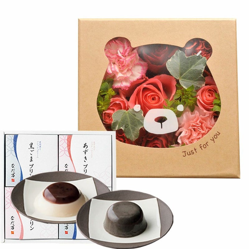 花とスイーツのセット♪ ハピネスフラワーBOX「くま」+「なだ万」和風プリンセット ギフトセット  生花 FKAASW