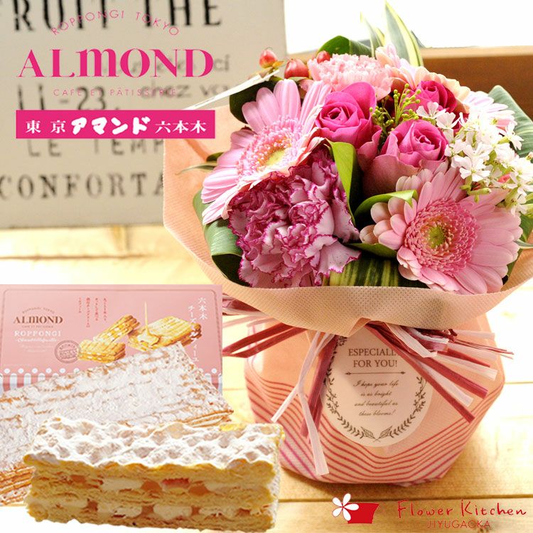 旬のスタンディングブーケ+ 「六本木アマンド」チーズミルフィーユセット  生花 FKAASW