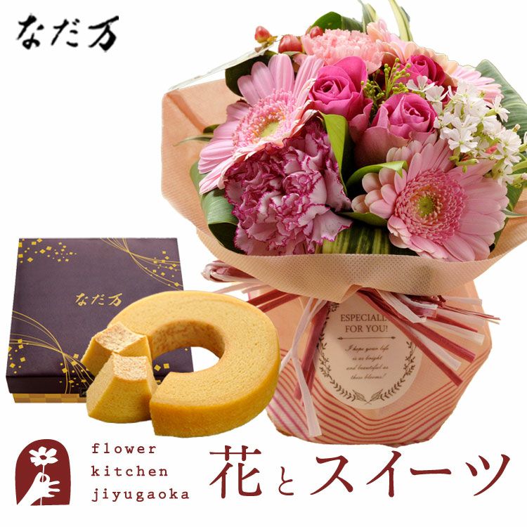 旬のスタンディングブーケ+なだ万監修 和三盆バウムクーヘン 生花 FKAASW