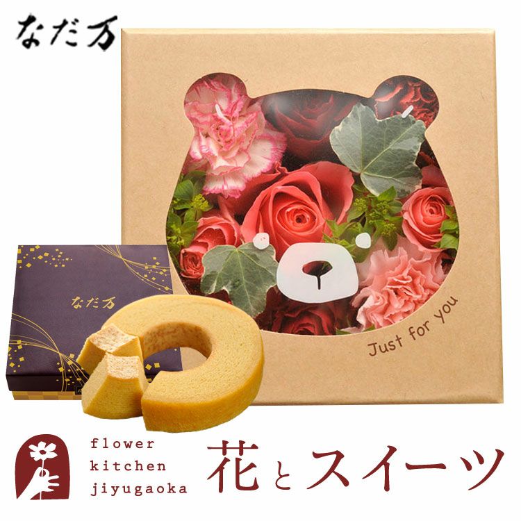 ハピネスフラワーBOX「くま」+なだ万監修 和三盆バウムクーヘン 生花 FKAASW