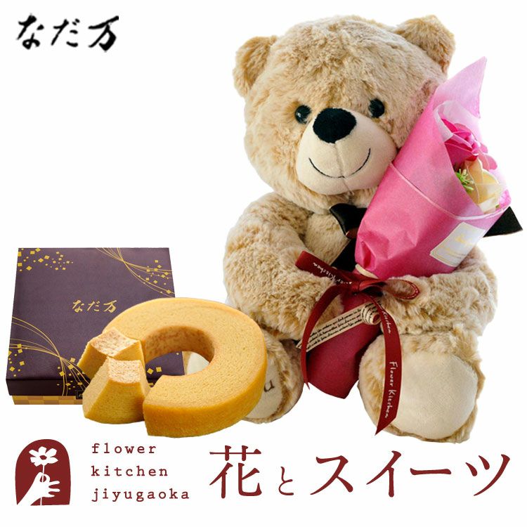 ソープフラワーアレンジ くまのマックス&フェアリーブーケ+なだ万監修 和三盆バウムクーヘン FKTPHSW