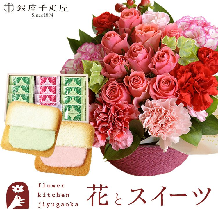 ローズガーデンアレンジ+ 銀座千疋屋 銀座フルーツラング ラングドシャ 生花 FKAASW