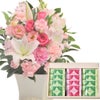 お祝いユリアレンジ ベル「ピンク」+銀座千疋屋 銀座フルーツラング ラングドシャ 生花 FKAASW