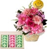 ピック付き季節のフラワーギフト【ピンク】+銀座千疋屋 銀座フルーツラング ラングドシャ 生花 FKAASW