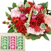 ミニョンバスケット【ピンクレッド】+銀座千疋屋 銀座フルーツラング ラングドシャ 生花 FKAASW