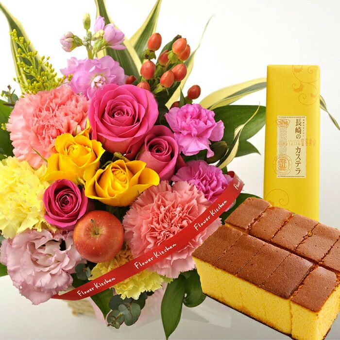 バラアレンジメント+長崎カステラ蜂蜜 0.5号 10切入セット  生花 FKAASW