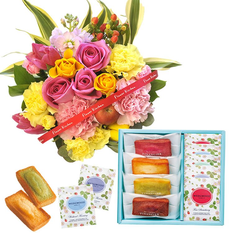 バラアレンジメント+【ウェッジウッド】ティーバッグセット  生花 FKAASW
