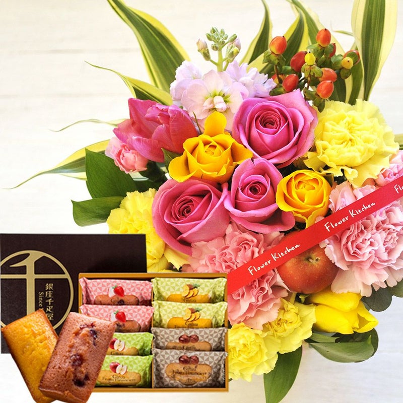 バラアレンジメント+【銀座千疋屋】銀座フルーツフィナンシェセット  生花 FKAASW