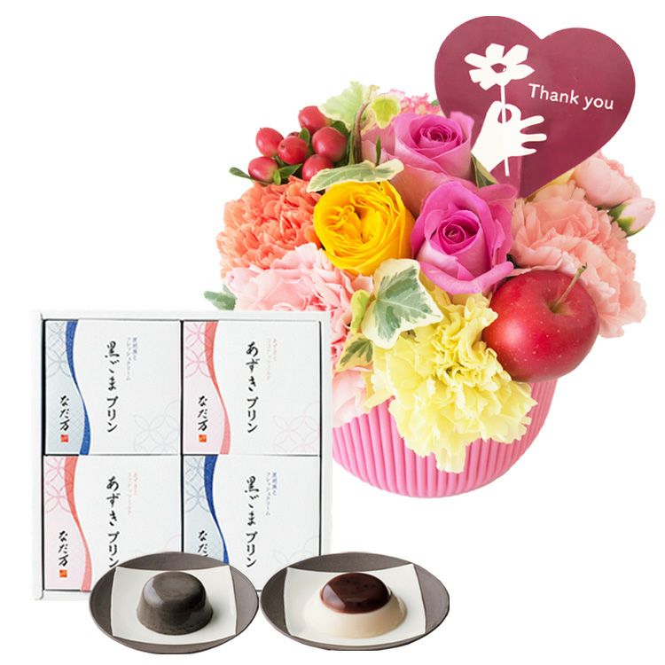 選べる2種類のアレンジメント+【なだ万】和風プリンギフトセット 生花 FKAASW