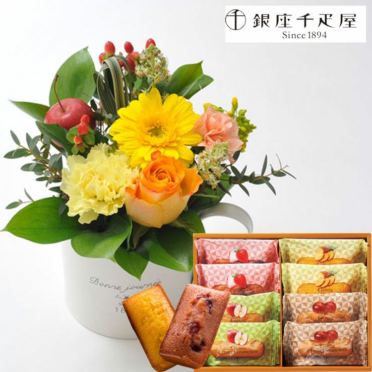 ガーベラカップアレンジ+【銀座千疋屋】フルーツフィナンシェセット 生花 FKAASW