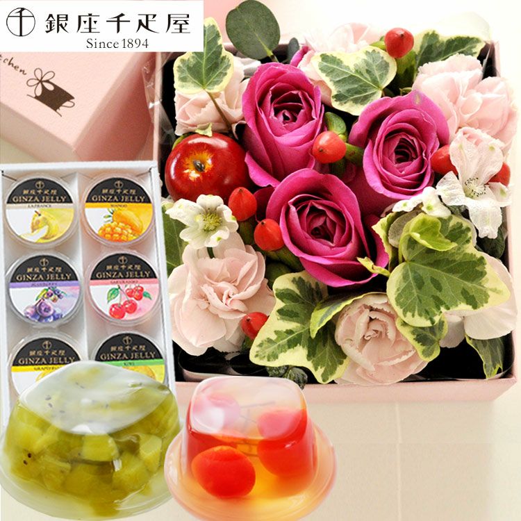 【四角フラワーボックス】MサイズBOX+【銀座千疋屋】銀座ゼリー6個入りセット  生花 FKAASW