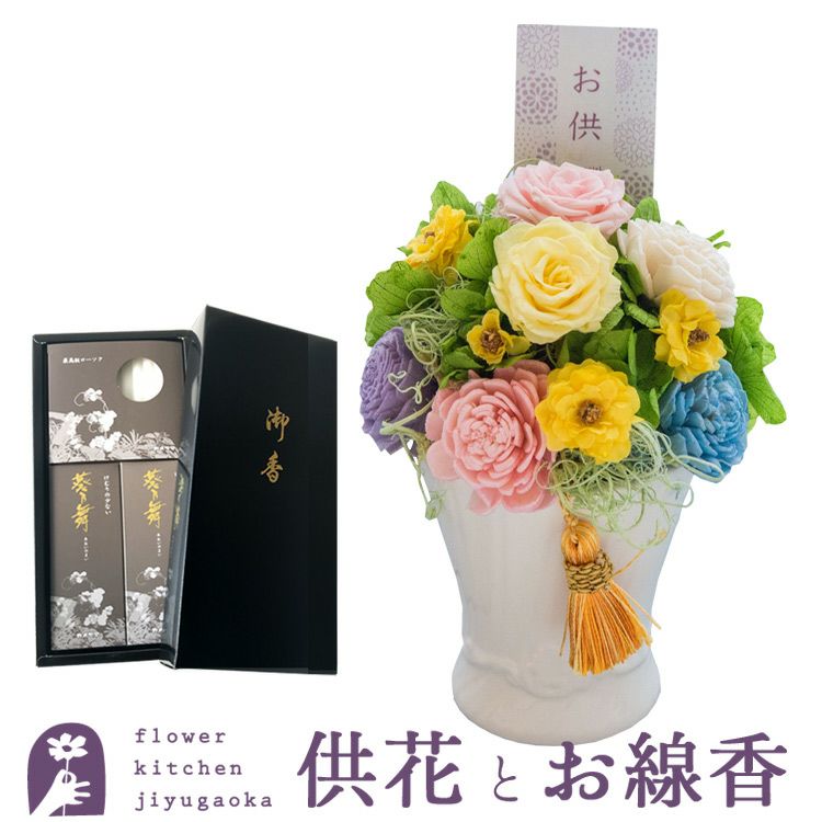 【お供え】プリザーブドフラワー「メモリアルペール」+お線香 進物用 葵乃舞煙少香 2種セット  FKTPOSE