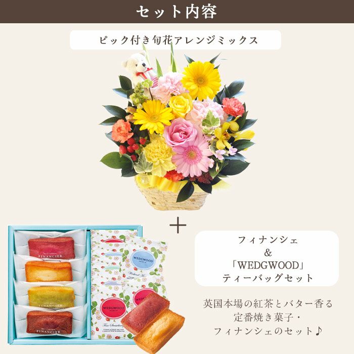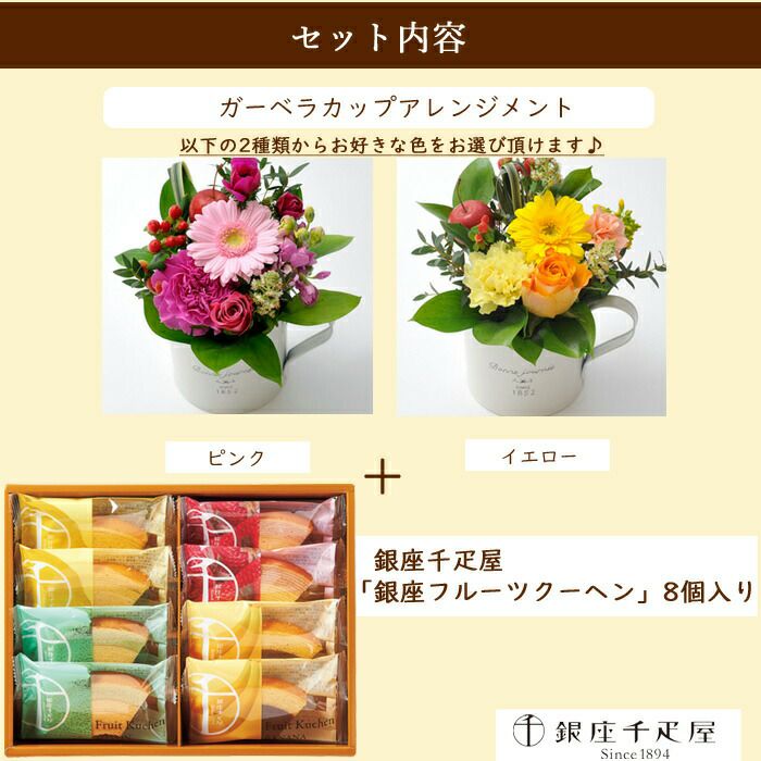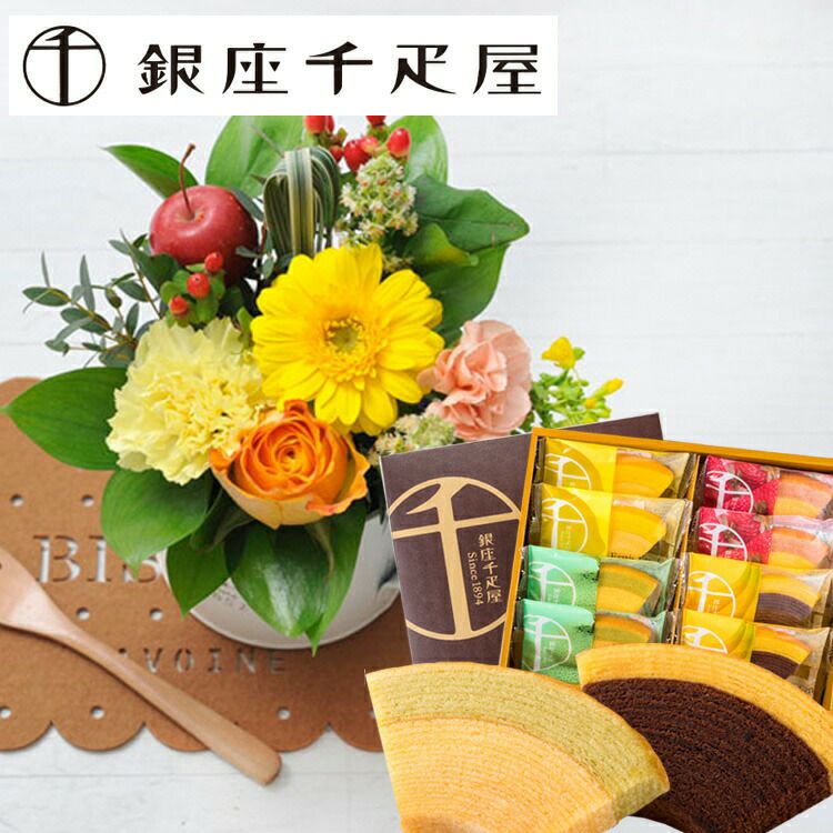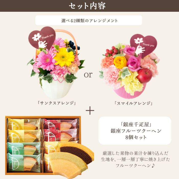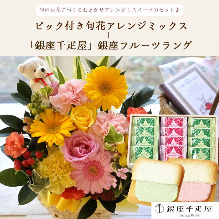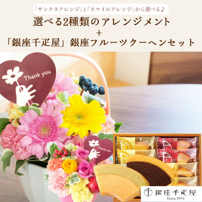 選べる2種類のアレンジメントと「銀座千疋屋」銀座フルーツクーヘン 誕生日 アレンジメント スイーツ FKAASW