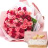 バラ50本花束「レッド×ピンク」バイカラーラッピング+「アマンド」チーズミルフィーユセット 生花 FKAASW