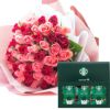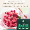 バラ50本花束「レッド×ピンク」バイカラーラッピング+スターバックスドリップコーヒーセット 生花 FKAASW