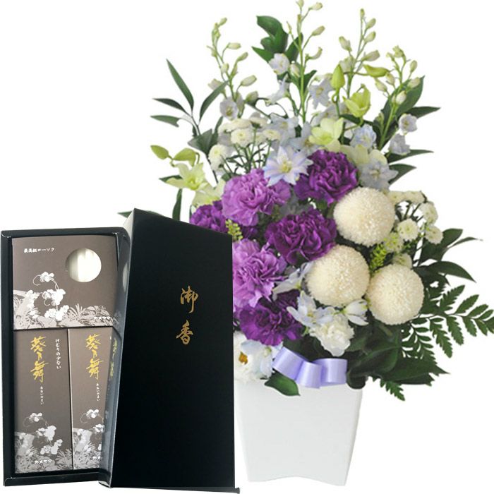 ムーンダストお供えアレンジMサイズ+「葵乃舞」ギフトセット 生花 FKAASE