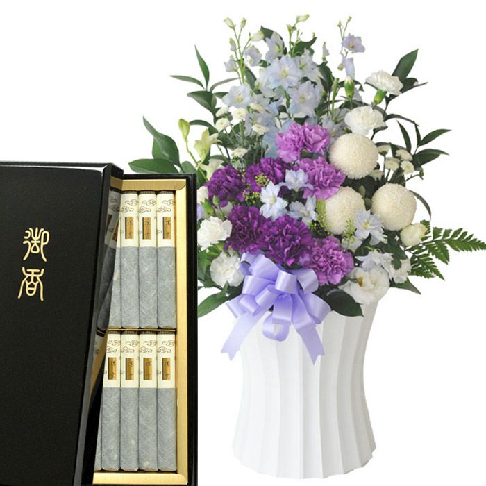 ムーンダストお供えアレンジLサイズ+日本香堂 「瑞雲」お線香 ご進物用ギフトセット  生花 FKAASE