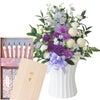 ムーンダストお供えアレンジLサイズ+カメヤマローソク 桐箱入り「桜華の雅」線香セット 生花 FKAASE