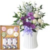 ムーンダストお供えアレンジLサイズ+カメヤマローソク ミニ寸線香とローソクのセット「和華の雅」  生花 FKAASE
