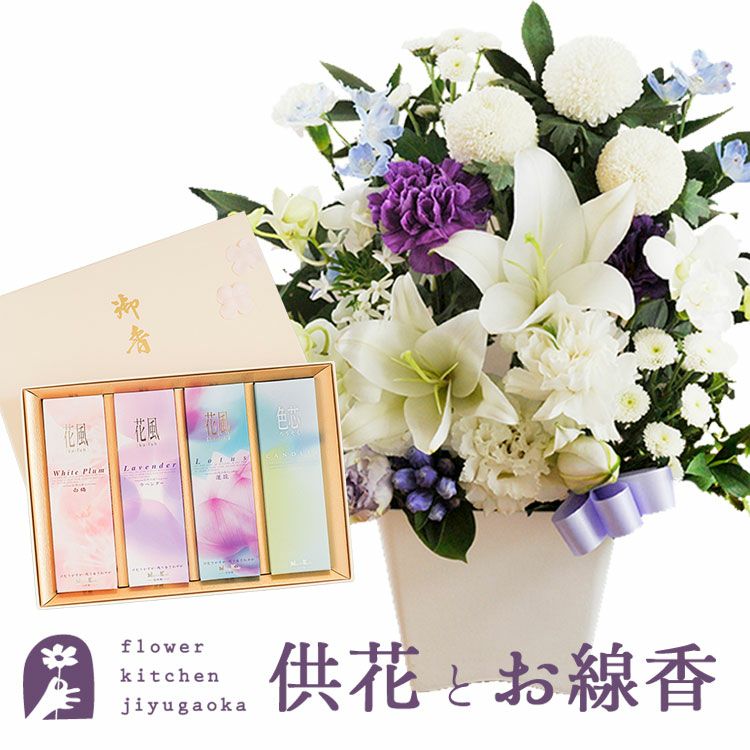 【お供え】お供えプリザーブドフラワー「静香」 と『和遊』ローソク線香セット+フィナンシェ&「ウェッジウッド」ティーバッグセット WEDGWOOD(ウェッジウッド) FKTPOSW