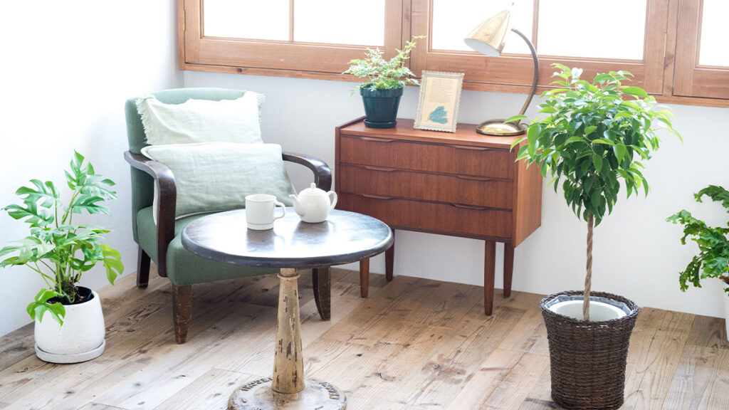 ベンジャミンは「初心者にも育てやすい観葉植物」でありながら、雰囲気があっておしゃれさも備えた存在です。品種によって葉の形や色味に違いがあるため、お部屋の空間やインテリアのスタイルに合わせて選ぶのも楽しいですね。
