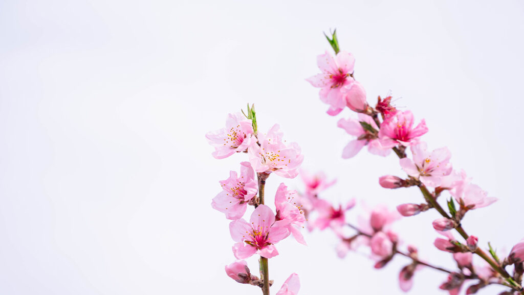可憐なピンク色の花が特徴です。桜よりも少し早く咲き、花びらの先が尖っているのが桜との違いで、多産を意味する縁起の良い花として、ひな祭りに飾られ女の子の成長を願う象徴でもあります。