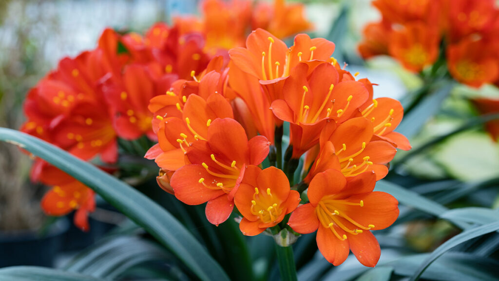 南アフリカ原産でヒガンバナ科に属し、肉厚な葉と春(3月~4月頃)に咲くラッパ状のオレンジ色の豪華な花が特徴で、見た目の美しさと気品から「君子」と名付けられました。