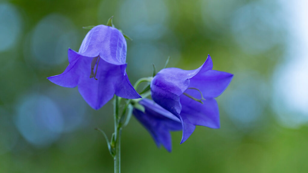 釣鐘(ベル)のような形が特徴です。ポジティブな花言葉が多く、日頃の感謝を伝えたり、変わらない友情や愛情を誓う贈り物にぴったりで、特に紫色は「大望」を表します。