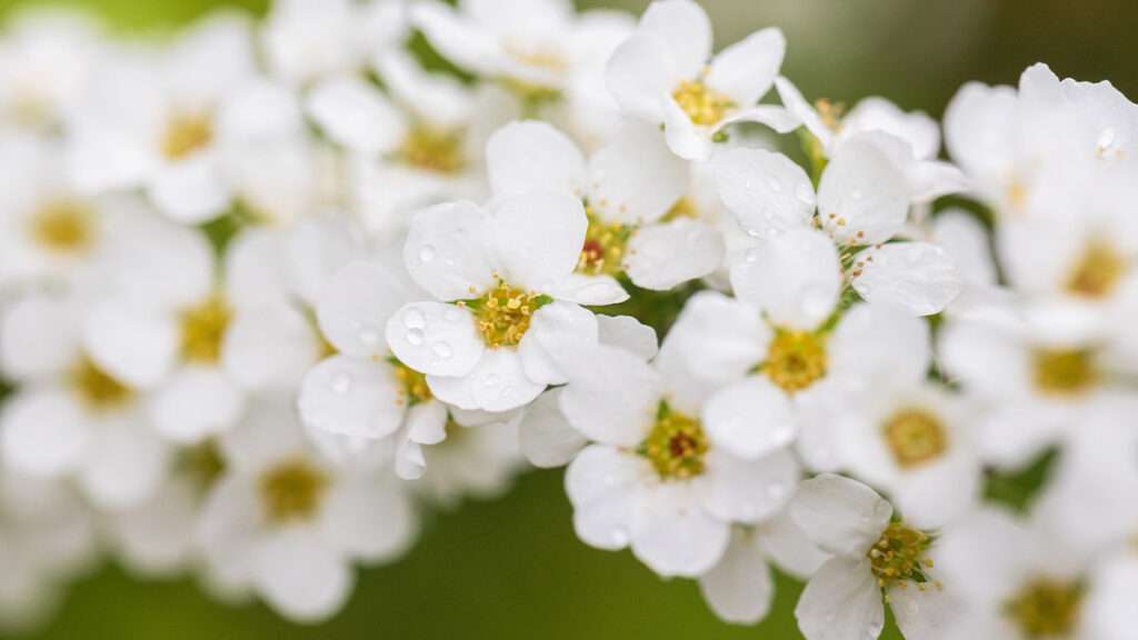 柳のように枝がしだれて、雪が積もったように小さな白い花を無数に咲かせるのが特徴です。春(3~4月頃)に咲き、名前の由来は柳に似た葉と雪のような花姿からきており、可憐な姿で古くから親しまれています。