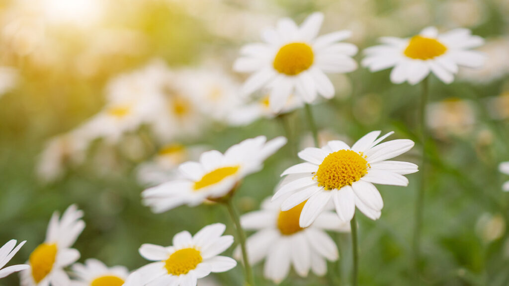 白く小さな花とリンゴのような甘い香りが特徴で、ジャーマン種(カミツレ)とローマン種があり、ハーブティーや観賞用として人気があります。